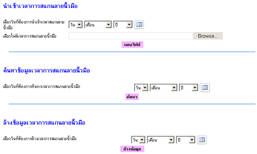 ภาพแสดงหน้าจอการตั้งค่าเพื่อนำเข้าข้อมูลการบันทึกเวลาทำงานที่ต้องใช้ในการตรวจสอบกับระบบการลา อิเล็กทรอนิกส์ ซึ่งสามาถเชื่อมโยงเพื่อนำเข้าข้อมูลจากเครื่องบันทึกเวลาโดยอัตโนมัติ หรือ นำเข้าโดยตรงก็ได้
