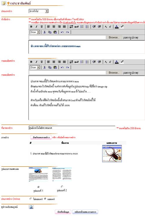 ภาพแสดงหน้าจอ Editor สำหรับการจัดทำข่าวประชาสัมพันธ์