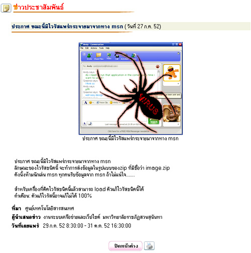 ภาพแสดงหน้าจอการแสดงข่าวประชาสัมพันธ์ที่จัดทำโดยระบบ
