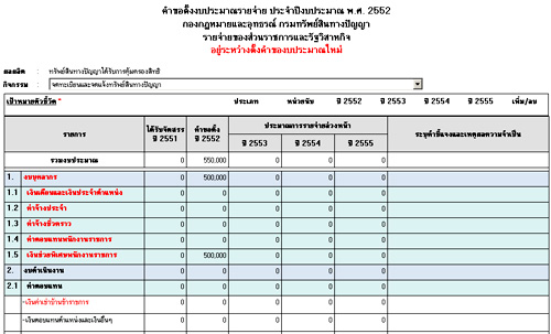 ตัวอย่างหน้าจอ ระบบการตั้งค่างบประมาณ