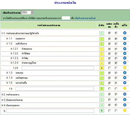 ภาพแสดงหน้าจอการกำหนดประเภทแหล่งเงินงบประมาณได้อย่างไม่จำกัด
