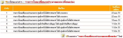 ภาพแสดงหน้าจอแสดงประวัติการโอนเปลี่ยนเงินงบประมาณที่จะจัดเก็บไว้ทุกรายการที่มีการโอนเปลี่ยน