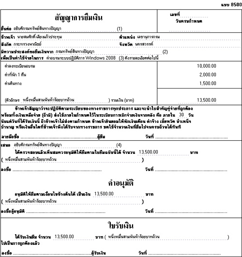 ภาพแสดงหน้าจอแบบฟอร์มการทำสัญญายืมเงินทดรองแบบอิเล็กทรอนิกส์