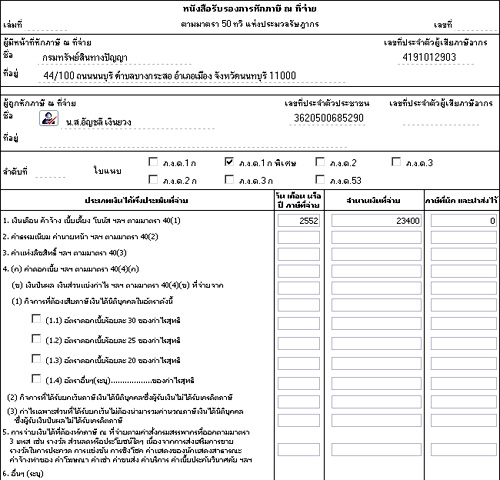 ภาพแสดงหน้าจอหนังสือรับรองการหักภาษี ณ ที่จ่ายรายบุคคลที่ออกโดยระบบ ณ สิ้นปี