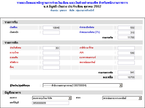 ตัวอย่างหน้าจอ ระบบจัดทำและเบิกจ่ายเงินเดือนและภาษี