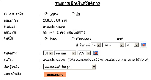 ภาพแสดงหน้าจอการเบิกจ่ายเงินสวัสดิการองค์กร