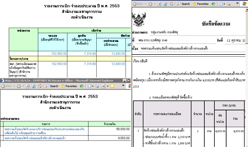 ภาพแสดงหน้าจอการ drill down เพื่อไปตรวจดูหลักฐานการเบิกเงินจากรายงานการเบิก-จ่ายเงินงบประมาณ