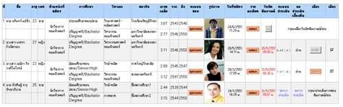 ภาพแสดงหน้าจอสรุปผลผู้ที่ผ่านการคัดเลือกเพื่อนัดหมายสัมภาษณ์