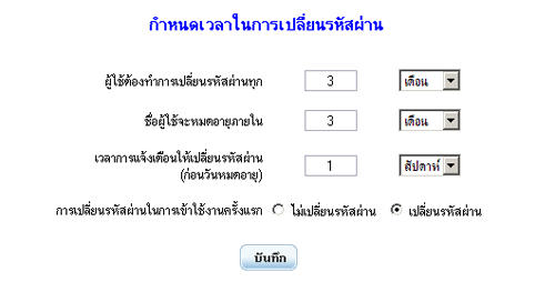 ภาพแสดงหน้าจอการบังคับให้มีบุคคลต้องเปลี่ยนรหัสผ่านตามเวลาที่กำหนด