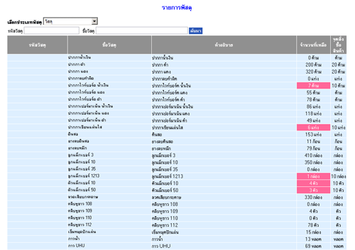 ตัวอย่างหน้าจอ ระบบบริหารคลังวัตถุดิบและสินค้า