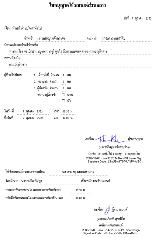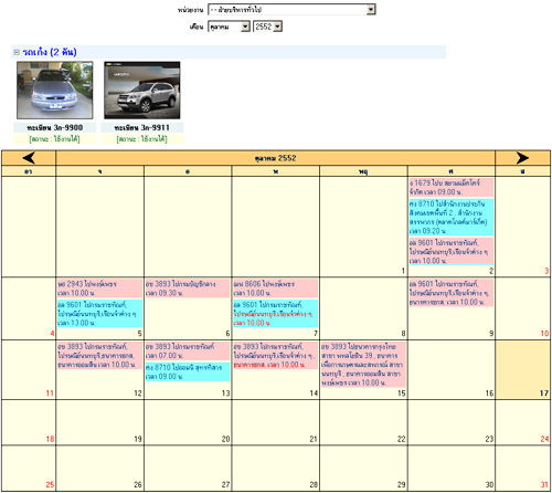 ตัวอย่างหน้าจอ ระบบจองรถยนต์และทรัพย์สินอื่น