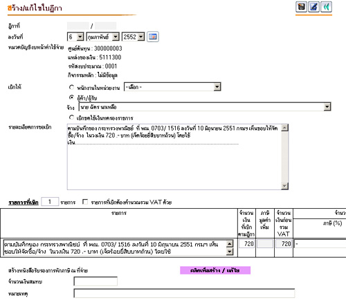 ภาพแสดงหน้าจอการตั้งฎีกาเบิกเงินงบประมาณ (กรณีของภาครัฐ)