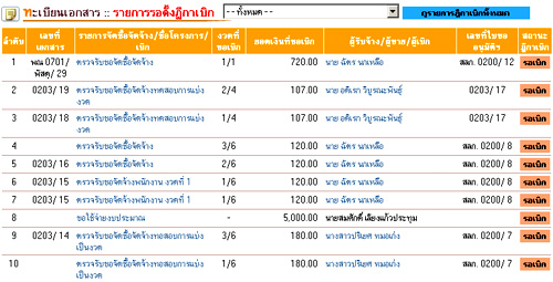ยังมีทะเบียนคุมเอกสารการตั้งเบิก ซึ่งมีรายละเอียดของตั้งเบิกที่เจ้าหน้าที่การเงินหรือผู้บริหาร หรือเจ้าหน้าที่ตรวจสอบภายในขององค์กรสามารถเห็นภาพรวมหรือรายการสรุปของเอกสารการตั้งเบิกทั้งหมด ตั้งแต่เลขที่ใบเบิก ยอดเงินที่เบิก หมวดบัญชีค่าใช้จ่าย ยอดเงินหักภาษี ณ ที่จ่าย ผู้รับเงิน เป็นต้น โดยสามารถคลิกไปดูรายละเอียดของเอกสารอิเล็กทรอนิกส์ดังกล่าวได้