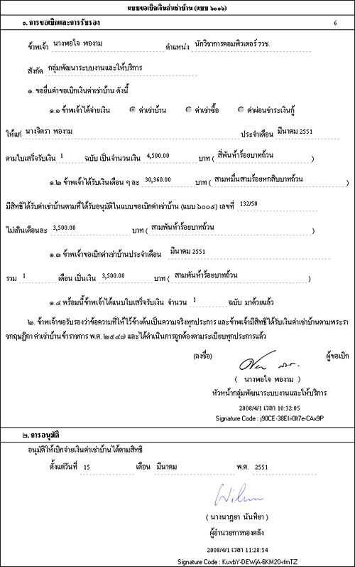 ภาพแสดงหน้าจอการเบิกจ่ายค่าเช่าบ้านผ่านแบบฟอร์มอิเล็กทรอนิกส์