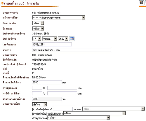 ตัวอย่างหน้าจอ ระบบรายรับและการส่งเงินรายได้แผ่นดิน