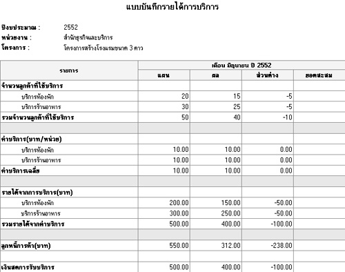 ภาพแสดงหน้าจอรายงานรายรับภายใต้แผนธุรกิจของระบบบริหารโครงการ/แผนธุรกิจ
