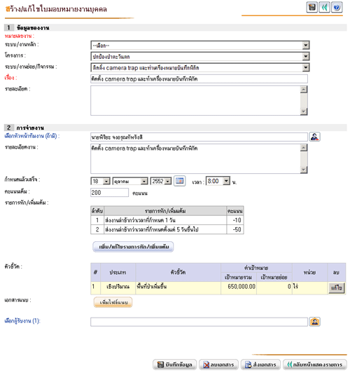 ตัวอย่างหน้าจอ ระบบการมอบหมายงาน