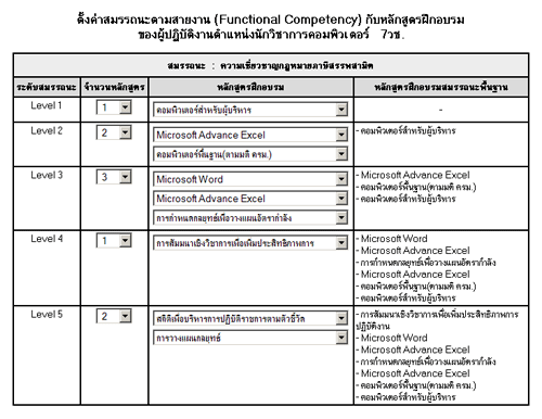 ภาพแสดงหน้าจอการกำหนดประเภทการฝึกอบรมกับสมรรถนะแต่ละระดับ