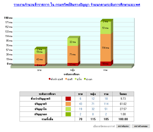 ภาพแสดงหน้าจอกราฟของรายงานบุคลากรในระบบ e-Office ที่เกิดจากการนำเข้าข้อมูลจากระบบบุคลากรที่มีอยู่