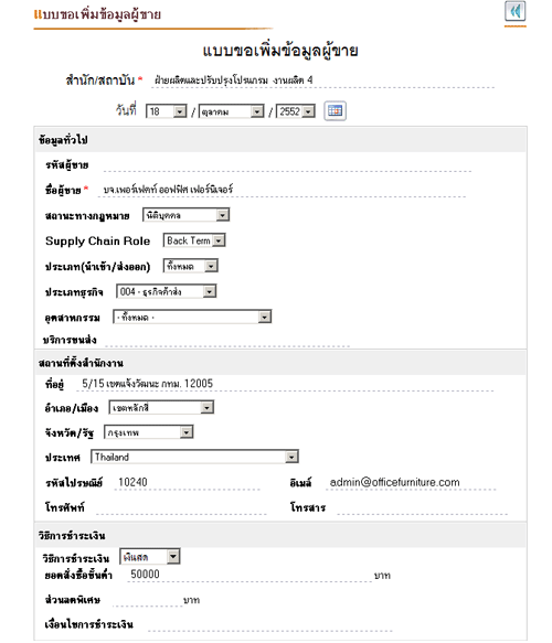 ตัวอย่างหน้าจอ ระบบบริหารคู่ค้าและลูกค้าสัมพันธ์